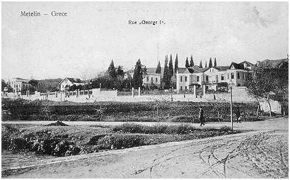 Corner of El. Venizelou & Karapanayioti St. Karapanayioti Park now lies where the fields once were. On the corner, right, St Constantine is just visible.